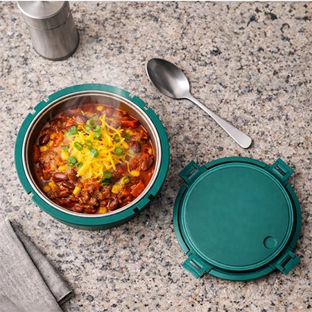 This hearty chili stays hot from breakfast through lunchtime thanks to Pakd’s double walled vacuum insulated stainless steel design. It uses the same insulation concept trusted in your favorite coffee mug, scaled for real meals.